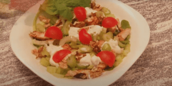 Seler naciowy w połaczeniu z grillowanym kurczakiem dipem serowym i orzechami.