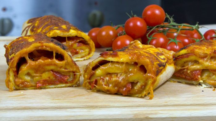 Kolejna wariacja na temat pizzy, zrolowana zachowuje wszelkie walory smakowe tradycyjnej, a dużo łatwiej się ją spożywa.